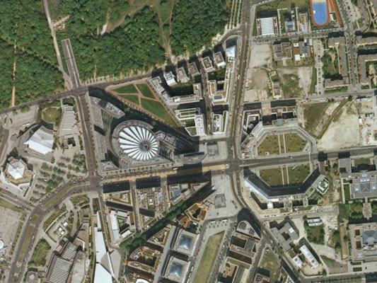 ○中央の長方形の広場が Potsdamer Platz、その左の楕円形の建物が Sony Center、