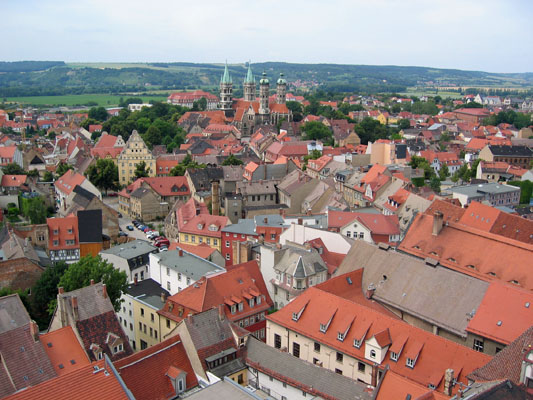 中央の上に見える4つの塔をもった建物が Dom で、その向こうの浅い谷に Saale 川が流れている。